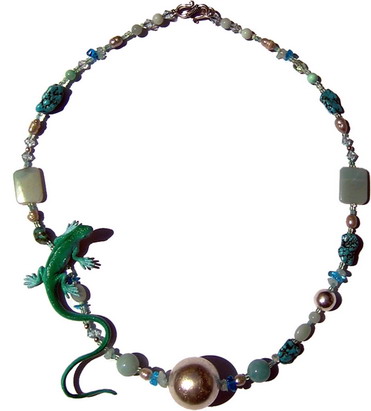 Amazonit, Süßwasserperlen, Rauchquarz, Silber, Türkis