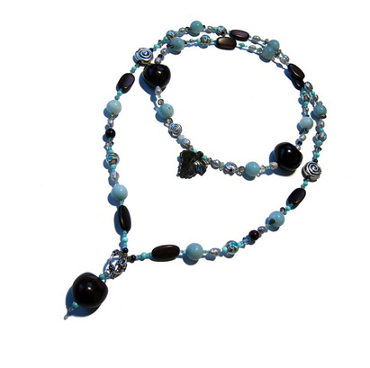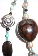Amazonit, Rauchquarz, Süßwasserperlen, Silber