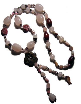 Rosenquarz, Rhodonit, Rauchquarz, Süßwasserperlen, Jaspis, Silber