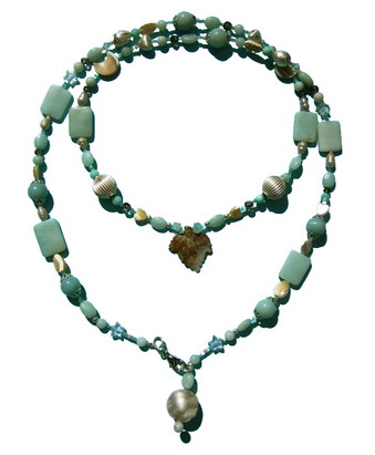 Amazonit, Perlmutt, Achat, Rauchquarz, Süßwasserperlen, Silber