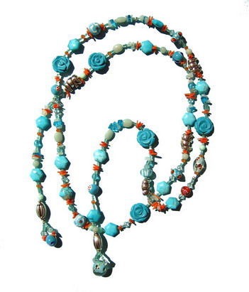 Magnesit (farbig), Koralle, Amazonit, Murano, Silber