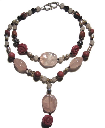 Rosenquarz, Rhodonit, Rauchquarz, Svarowski, Silber